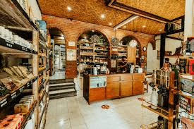 Di kafe ini juga ada toko kecil yang menjual berbagai produk perawatan kulit dan rumah tangga alami, yang dipasok hanya oleh usaha kecil lokal di seluruh Bali. Mereka juga memberikan kembali kepada masyarakat dengan cara menjalankan klinik nirlaba yang menyediakan layanan medis, gigi dan persalinan bagi wanita.