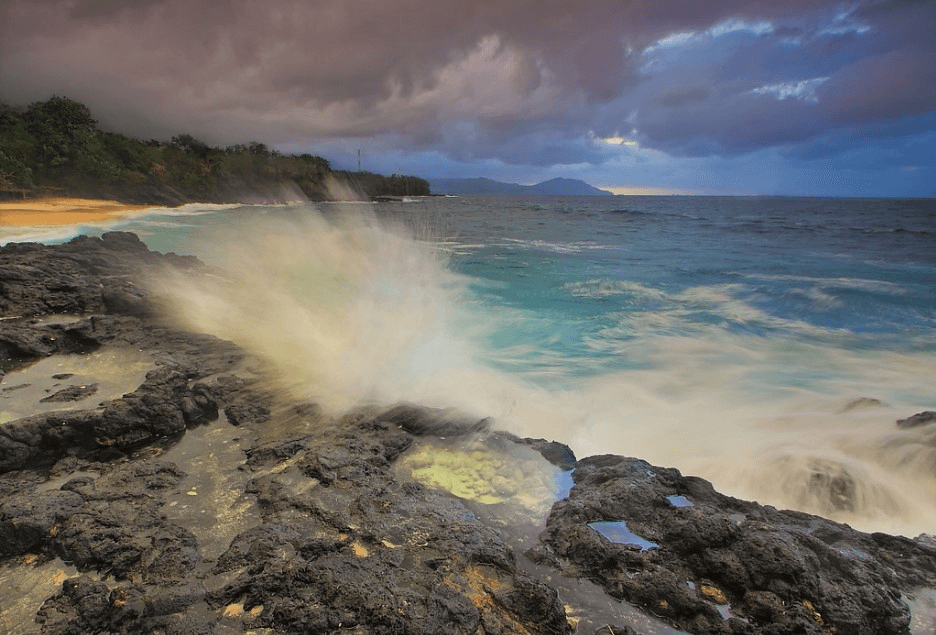 Di sebelah kanan pantai, terdapat fenomena alam yang menarik, yaitu water blow. Ini adalah fenomena di mana ombak bertabrakan dengan susunan karang, menciptakan semburan air yang spektakuler. Selain itu, ada juga laguna di tengah-tengah karang yang mirip dengan kolam renang alami.