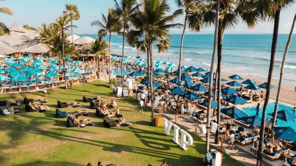 Beach club di Bali kali ini memberikan nuansa dna pemandangan yang sangat indah dan estetik. Dulunya, kawasan ini sangat dikenal dengan nama Catamaran beach club dan berubah menjadi tropical beach club yang sangat megah dan mewah.