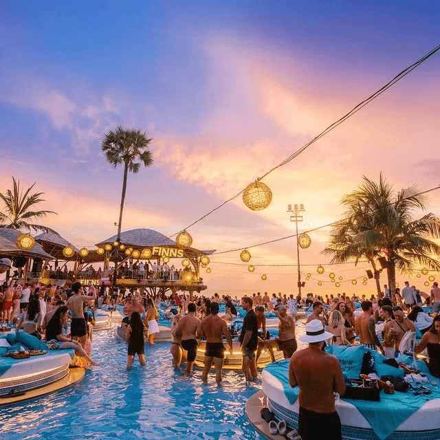 Dari mulai siang, sore sampai malam hari ke pagi dini hari, semua hiburan bisa kamu temukan di tempat asyik ini. Bahkan, kamu juga bisa menikmati sunset sambil berendam di kolam renang estetik sembari mendengarkan musik dari DJ terkemuka. Perihal makanan dan minuman kamu tidak perlu khawatir, ada Sushi Bar dengan aneka pilihan sushi yang segar dan enak, hingga resto makanan India dan Vegan.